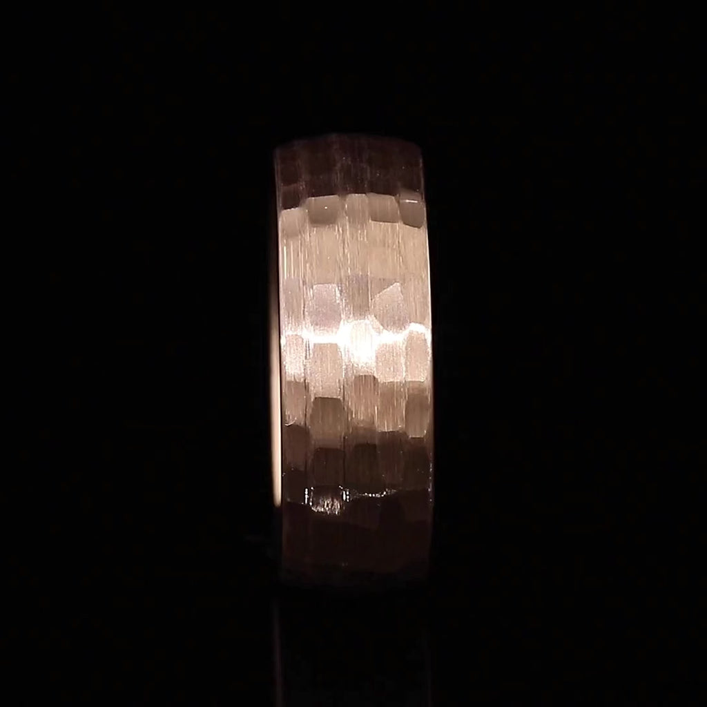 "BEDROCK " Tungsten Carbide Rose Gold Ring 8mm, 4mm w/ Hammered Design