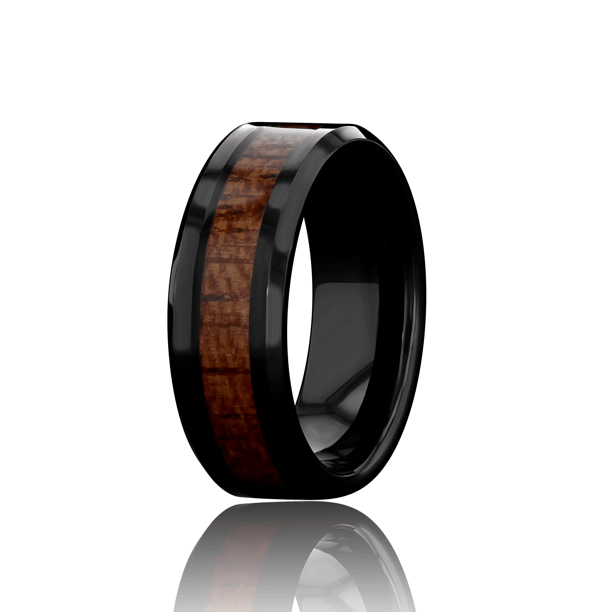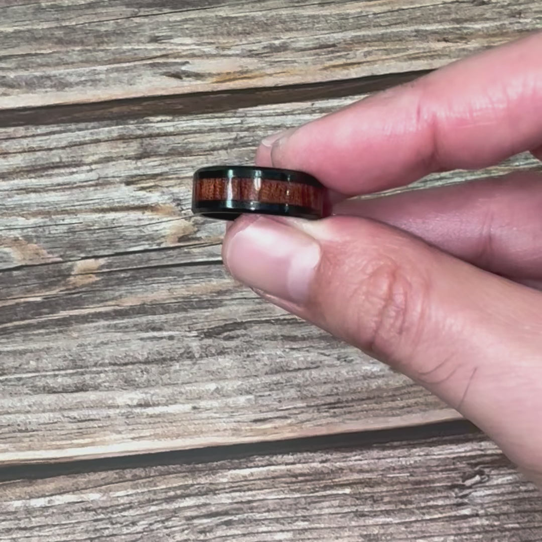 "ELEMENTAL"Tungsten Carbide Black Ring 8mm w/ Koa Wood