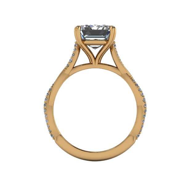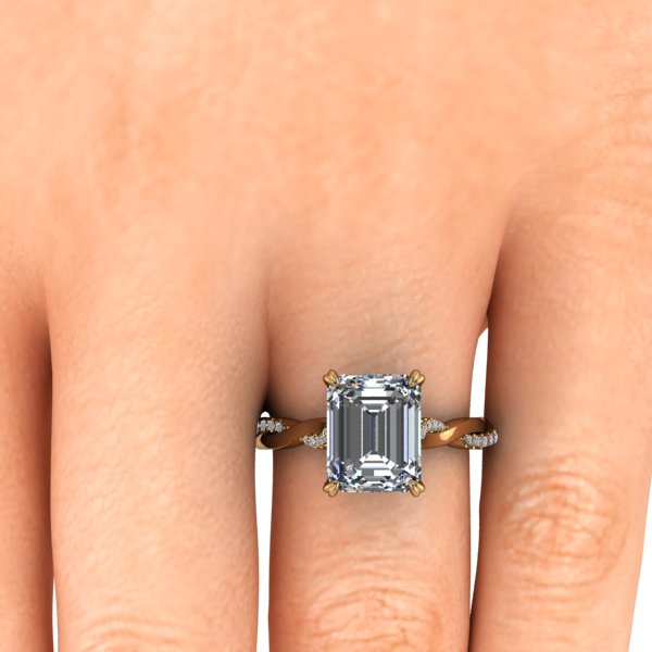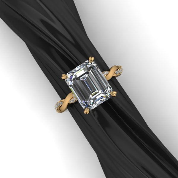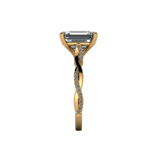 Emerald Cut- 3.09 Carat Emerald Cut Lab Diamond, 14K Yellow Gold with Accent Diamonds