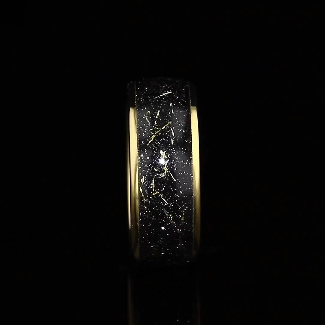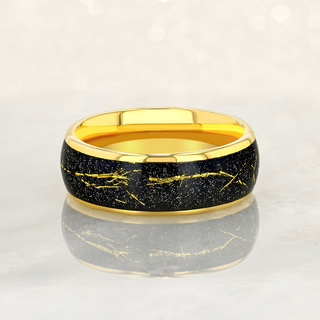 "STARDUST" Tungsten Carbide Gold Ring 8mm, 6mm w/ Meteorite Dust and Gold Specs