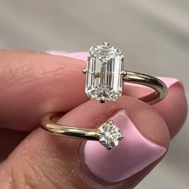 Introducing our Custom White Emerald Cut Lab Diamond, that weighs at 2 Carat Center Stone and 0.20 Side Stone, VS1 Clarity and E Color. Perfect engagement or wedding ring for any White Diamond Enthusiast. Please let us know as we can make it in any ring setting.